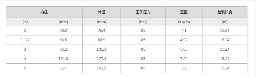 內膠:氯丁橡膠增強層:四層交互纏繞的高強度鋼絲外膠:耐磨損,臭氧,合成橡膠,滿足MT/T98,GB/T15907和MSHA阻燃。溫度:-40℉ ~ 212℉(-40℃to 100℃)標準:GB/T 10544 4SP,EN 856 4SP,MT/T98 4SP